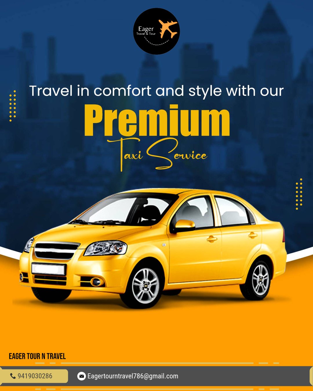 Eager Tour and Travels – Reliable Travel Partner in Srinagar Welcome to Eager Tour and Travels, your trusted choice for hassle-free transportation and tour planning in the beautiful city of Srinagar. We offer dependable and affordable taxi service in Srinagar for local sightseeing, airport transfers, and outstation trips. As a leading Best Taxi and Cab Service in Srinagar, we specialize in creating personalized tour packages for individuals, families, and groups looking to explore Kashmir's breathtaking beauty. Looking for quick and comfortable rides? Our cab service in Srinagar and flexible car rental in Srinagar options come with experienced drivers and clean, well-maintained vehicles to ensure a smooth ride every time.